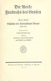 Berlin: 1913Die Werke Friedrichs des Großen, vol. 3 By Volz, Gustav Berthold